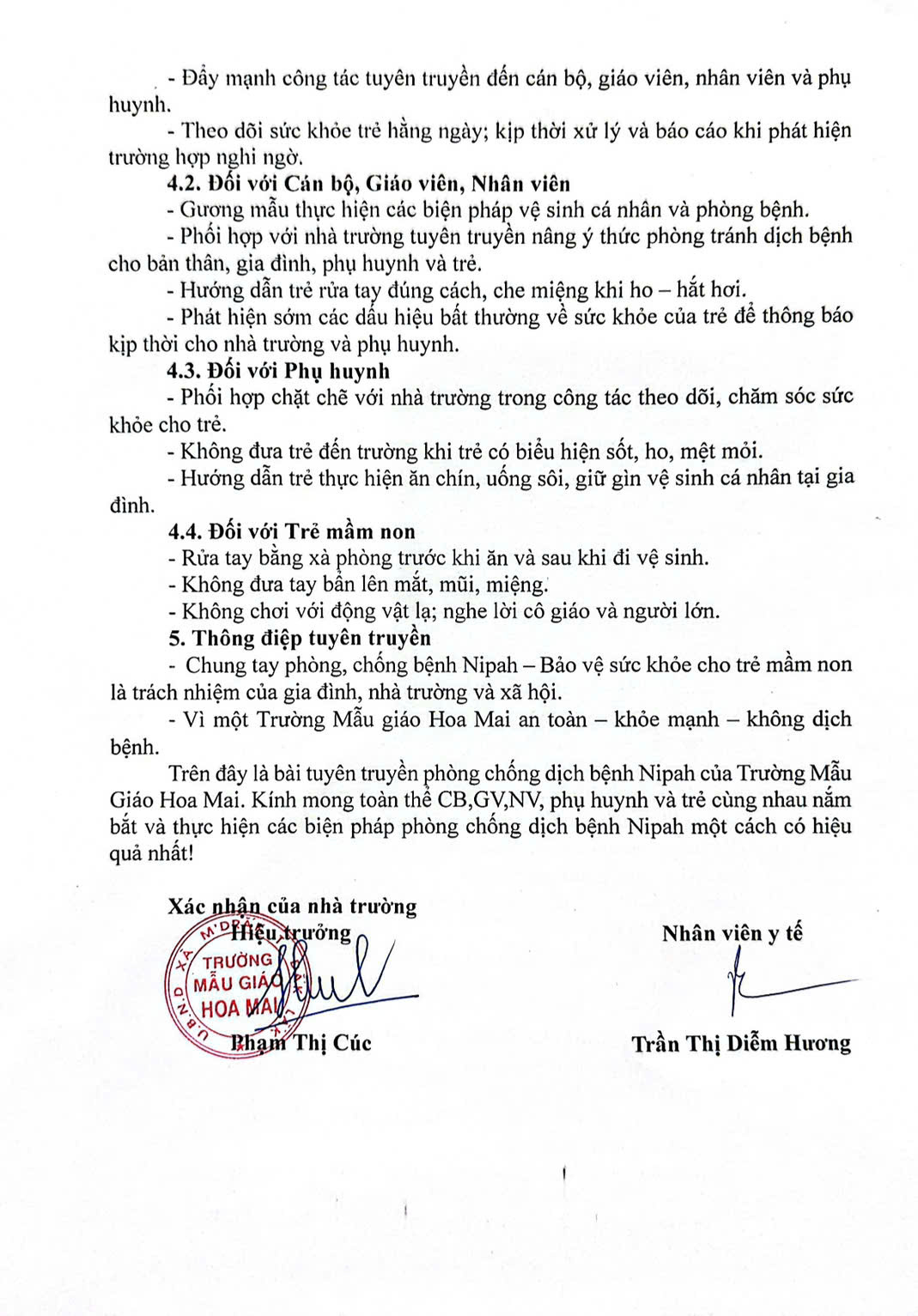 BÀI TUYÊN TRUYỀN PHÒNG CHỐNG DỊCH BỆNH NIPAH TẠI TRƯỜNG MG HOA MAI