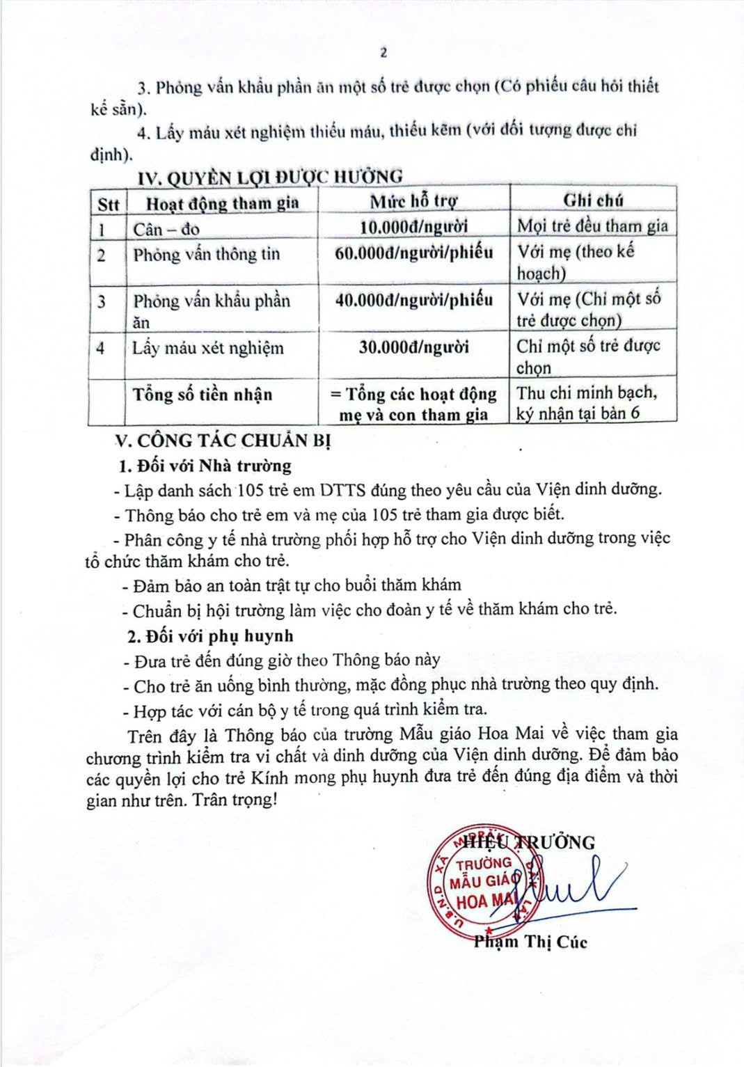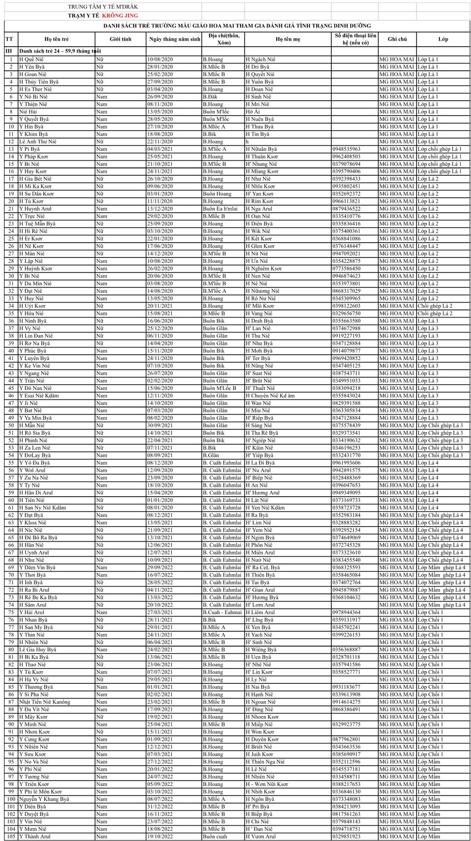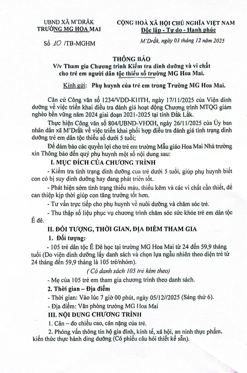 CHƯƠNG TRÌNH KIỂM TRA DINH DƯỠNG VÀ VI CHẤT CHO TRẺ EM NGƯỜI DÂN TỘC THIỂU SỐ TẠI TRƯỜNG MG HOA MAI