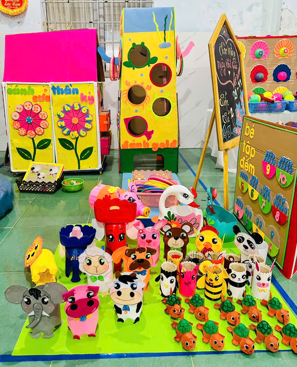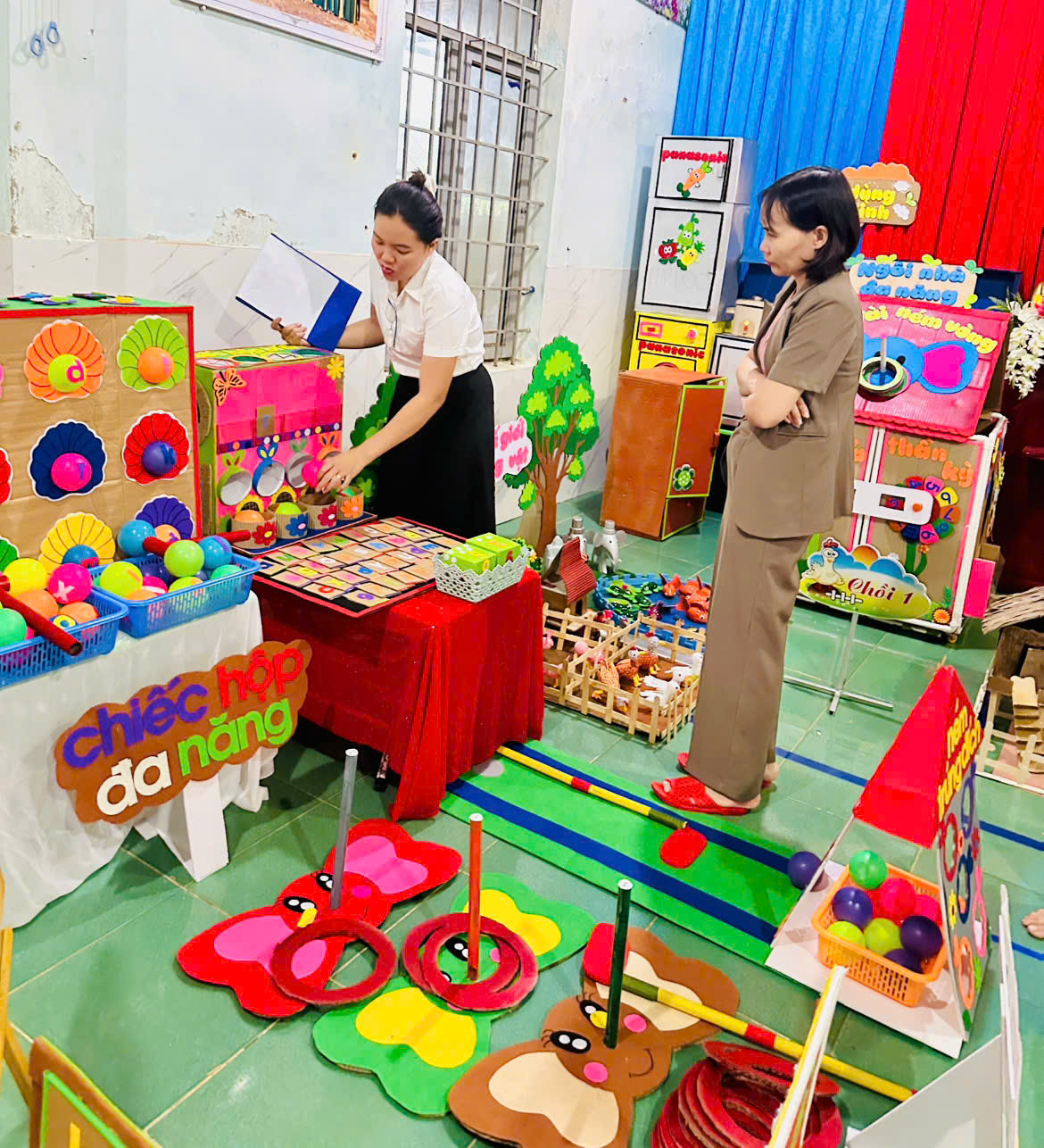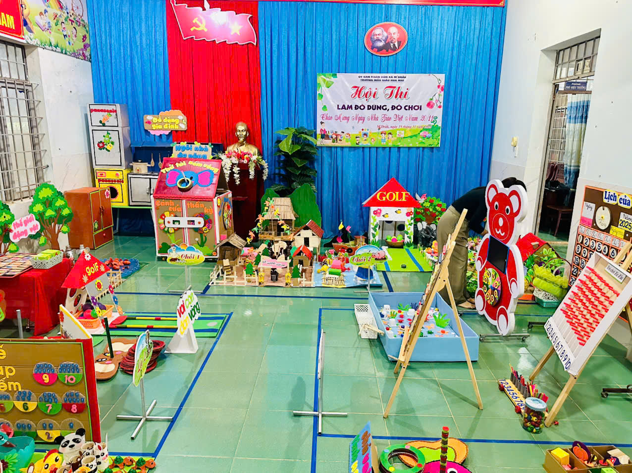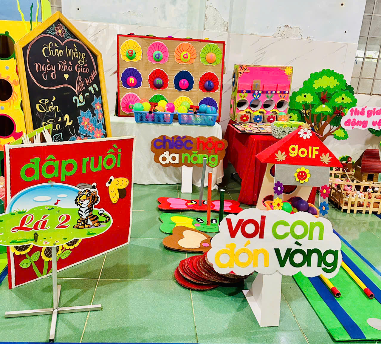 Nhiều sản phẩm đẹp mắt, bền, an toàn và có tính giáo dục cao đã được trưng bày, góp phần nâng cao chất lượng hoạt động chăm sóc – giáo dục trẻ trong nhà trường.