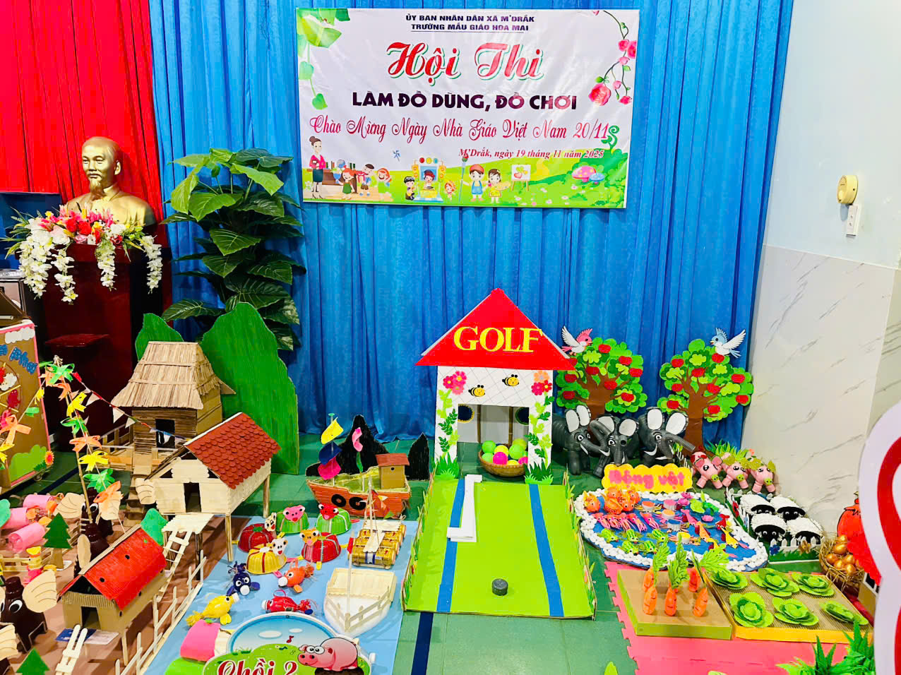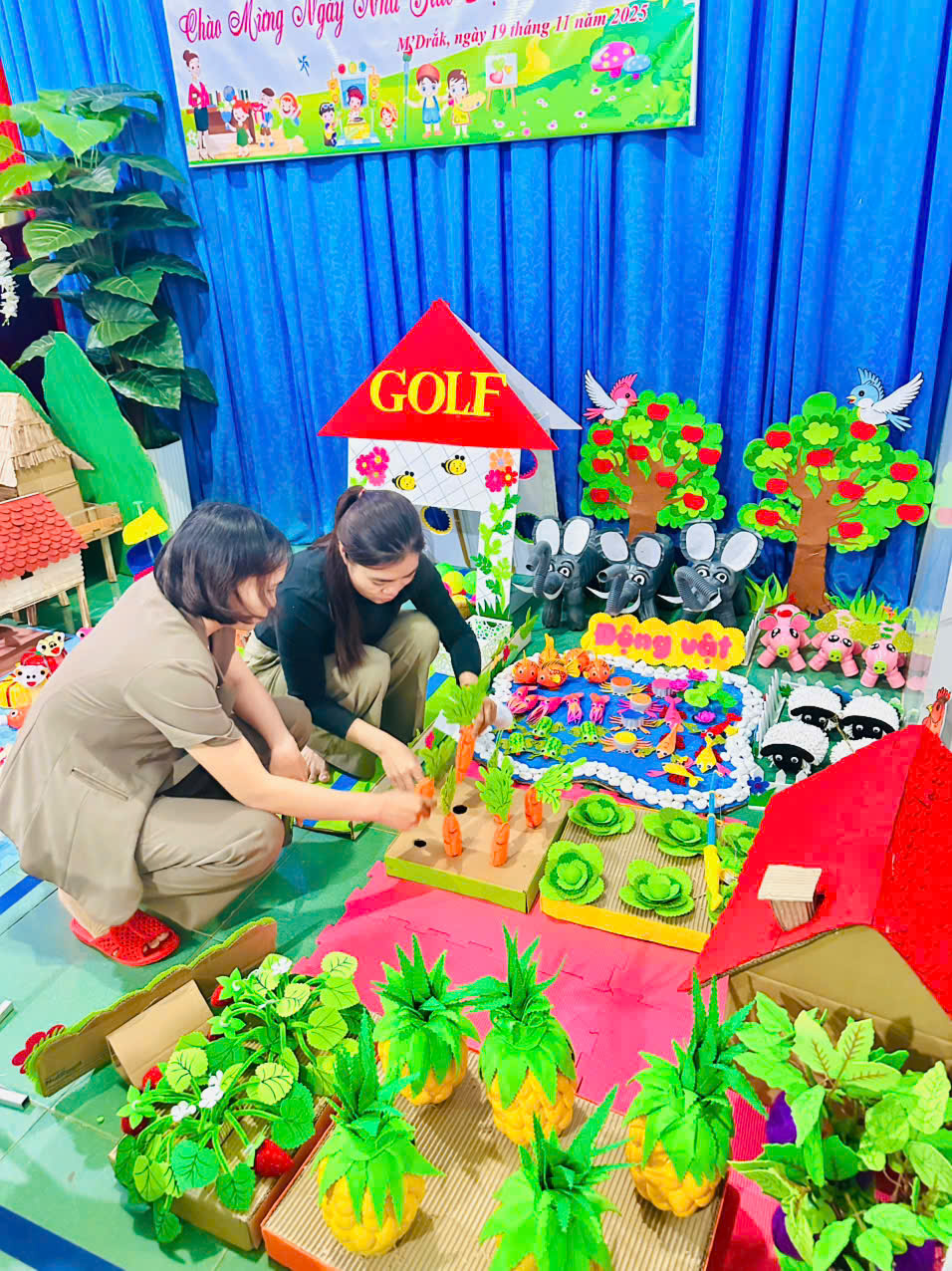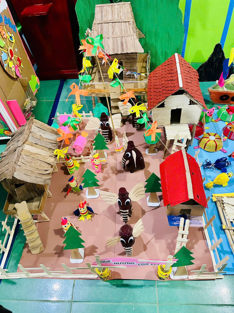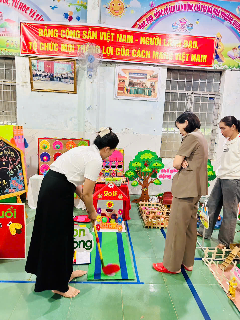 Nhiều sản phẩm đẹp mắt, bền, an toàn và có tính giáo dục cao đã được trưng bày, góp phần nâng cao chất lượng hoạt động chăm sóc – giáo dục trẻ trong nhà trường.